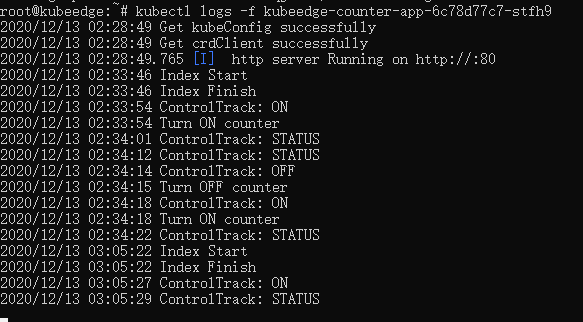 kubeedge-counter-demo(完结) 2020-12-13 笔记,实验 8 条评论 8050 次阅读 排错过程很不顺利,结论是Device协议版本不兼容,例程是v1alpha1版本,环境(KubeEdge v1.5.0)是v1alpha2版本。 把例程改用v1alpha2,就编译不了例程;把环境改用v1alpha1,就运行不了环境。 用v1.3.1版本的KubeEdge,就什么问题都没有了,一遍通过。   [TOC] # 用1.3.1版本的KubeEdge试试 ## 回档KubeEdge和Examples ``` # 回档到v1.3.1的KubeEdge cd $GOPATH/src/github.com/kubeedge/kubeedge rm -rf * git reset --hard 5bfca35 # 回档到10月22号的Examples cd $GOPATH/src/github.com/kubeedge/examples rm -rf * git reset --hard cc38a1a ``` ## 编译 ``` cd $GOPATH/src/github.com/kubeedge/kubeedge make all WHAT=cloudcore make all WHAT=edgecore make all WHAT=keadm cp _output/local/bin/keadm /usr/bin/ # Cloud和Edge cp _output/local/bin/cloudcore /usr/local/bin/ # Cloud cp _output/local/bin/edgecore /usr/bin/ # Edge ``` ## 清理旧版KubeEdge 1. 用 keadm 清理 ``` keadm reset ``` 2. 清理kind集群 ``` kind delete cluster ``` 3. 清理用不到的镜像 ``` # 查看现有的镜像 docker images # 逐个删除镜像 docker image rm <镜像id> ``` 4. 清理edgecore用到的数据库 ``` rm /var/lib/kubeedge/edgecore.db ``` 5. 清理kubeedge目录 ``` rm -rf /etc/kubeedge mkdir /etc/kubeedge mkdir /etc/kubeedge/config ``` 6. 删除kubeedge名空间 ``` kubectl delete namespace kubeedge ``` ## 部署KubeEdge ### K8s-Master节点(Kind) ``` kind delete cluster rm /root/kind.yaml vim /root/kind.yaml ``` 输入内容:(192.168.56.103是Cloud相对于Edge的IP),后面的80和8080是额外开放的端口 ``` kind: Cluster apiVersion: kind.x-k8s.io/v1alpha4 networking: apiServerAddress: "192.168.56.103" apiServerPort: 6443 nodes: - role: control-plane image: kindest/node:v1.19.3 extraPortMappings: - containerPort: 80 hostPort: 80 protocol: TCP - containerPort: 8080 hostPort: 8080 protocol: TCP ``` 创建kind ``` # 创建k8s master节点 kind create cluster --config=/root/kind.yaml # 重新把k8s的Server端配置文件复制到edge端 scp -r /root/.kube/config root@192.168.56.101:/root/.kube/config ``` ### 给k8s master 安装基础工具 ``` # 进入k8s控制面的容器 docker exec -it kind-control-plane /bin/bash ``` #### 看系统版本 ``` cat /etc/issue ``` > ``` > root@kind-control-plane:/# cat /etc/issue > Ubuntu Groovy Gorilla (development branch) \n \l > ``` > > 到`[ubuntu | 镜像站使用帮助 | 清华大学开源软件镜像站 | Tsinghua Open Source Mirror](https://mirror.tuna.tsinghua.edu.cn/help/ubuntu/) ,选版本20.10。 #### 改软件源,安装net-tools和vim ``` mv /etc/apt/sources.list /etc/apt/sources.list.bak echo "deb https://mirrors.tuna.tsinghua.edu.cn/ubuntu/ groovy main restricted universe multiverse" >/etc/apt/sources.list echo "deb http://mirrors.tuna.tsinghua.edu.cn/ubuntu/ groovy-updates main restricted universe multiverse" >>/etc/apt/sources.list echo "deb http://mirrors.tuna.tsinghua.edu.cn/ubuntu/ groovy-backports main restricted universe multiverse" >>/etc/apt/sources.list echo "deb http://mirrors.tuna.tsinghua.edu.cn/ubuntu/ groovy-security main restricted universe multiverse" >>/etc/apt/sources.list apt-get update apt-get install -y net-tools vim ``` ### 开放HTTP 8080端口 ``` # 进入kind-control-plane容器 docker exec -it kind-control-plane /bin/bash # 修改api-server的配置文件 cd /etc/kubernetes/manifests vim kube-apiserver.yaml # 1. 将里面的`- --insecure-port=0`的`0`改成`8080`。 # 2. 添加`--insecure-bind-address=0.0.0.0` # 重启 exit docker restart kind-control-plane ``` ### 部署cloudcore #### 注册设备协议和同步协议 ``` cd $GOPATH/src/github.com/kubeedge/kubeedge/build/crds/devices kubectl apply -f ./devices_v1alpha1_device.yaml kubectl apply -f ./devices_v1alpha1_devicemodel.yaml cd $GOPATH/src/github.com/kubeedge/kubeedge/build/crds/reliablesyncs kubectl apply -f objectsync_v1alpha1.yaml kubectl apply -f cluster_objectsync_v1alpha1.yaml ``` #### ~~自签证书~~ > **注意:v1.3.1不需要用certgen.sh手动自签证书。如果已经签了,执行以下操作:** > > ``` > rm -rf /etc/kubeedge/ca > rm -rf /etc/kubeedge/certs > kubectl delete namespace kubeedge > ``` ``` vim /etc/kubeedge/certgen.sh ``` `esc` ,`:set paste` ,`i`,粘贴以下内容: ``` #!/usr/bin/env bash set -o errexit readonly caPath=${CA_PATH:-/etc/kubeedge/ca} readonly caSubject=${CA_SUBJECT:-/C=CN/ST=Zhejiang/L=Hangzhou/O=KubeEdge/CN=kubeedge.io} readonly certPath=${CERT_PATH:-/etc/kubeedge/certs} readonly subject=${SUBJECT:-/C=CN/ST=Zhejiang/L=Hangzhou/O=KubeEdge/CN=kubeedge.io} genCA() { openssl genrsa -des3 -out ${caPath}/rootCA.key -passout pass:kubeedge.io 4096 openssl req -x509 -new -nodes -key ${caPath}/rootCA.key -sha256 -days 3650 \ -subj ${subject} -passin pass:kubeedge.io -out ${caPath}/rootCA.crt } ensureCA() { if [ ! -e ${caPath}/rootCA.key ] || [ ! -e ${caPath}/rootCA.crt ]; then genCA fi } ensureFolder() { if [ ! -d ${caPath} ]; then mkdir -p ${caPath} fi if [ ! -d ${certPath} ]; then mkdir -p ${certPath} fi } genCsr() { local name=$1 openssl genrsa -out ${certPath}/${name}.key 2048 openssl req -new -key ${certPath}/${name}.key -subj ${subject} -out ${certPath}/${name}.csr } genCert() { local name=$1 openssl x509 -req -in ${certPath}/${name}.csr -CA ${caPath}/rootCA.crt -CAkey ${caPath}/rootCA.key \ -CAcreateserial -passin pass:kubeedge.io -out ${certPath}/${name}.crt -days 365 -sha256 } genCertAndKey() { ensureFolder ensureCA local name=$1 genCsr $name genCert $name } gen() { ensureFolder ensureCA local name=$1 local ipList=$2 genCsr $name #local name=$1 #openssl x509 -req -in ${certPath}/${name}.csr -CA ${caPath}/rootCA.crt -CAkey ${caPath}/rootCA.key \ #-CAcreateserial -passin pass:kubeedge.io -out ${certPath}/${name}.crt -days 365 -sha256 SUBJECTALTNAME="subjectAltName = IP.1:127.0.0.1" index=1 for ip in ${ipList}; do SUBJECTALTNAME="${SUBJECTALTNAME}," index=$(($index+1)) SUBJECTALTNAME="${SUBJECTALTNAME}I